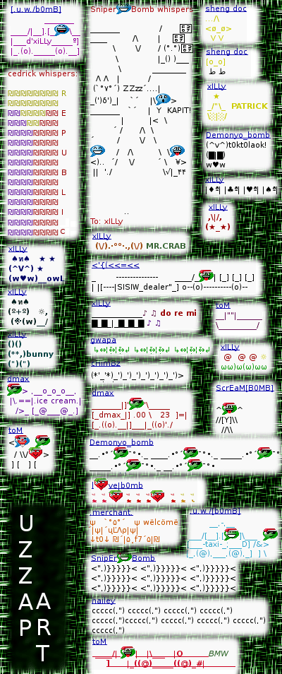 • – The first UZZAP Clan ever. Their flood is systematic as well and I guess they specialize in firepower related text arts. πŸ˜€ (Link to BOMBS Friendster Account)