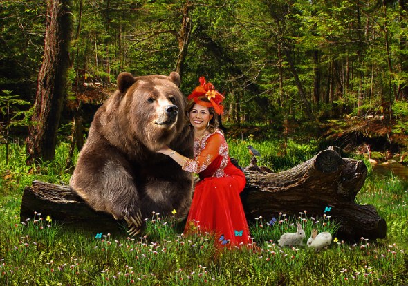 Bear from happeningstock.deviantart.com/ | The lovely woman is my mom, from my wedding pictures | Log from jellybellystock.deviantart.com/